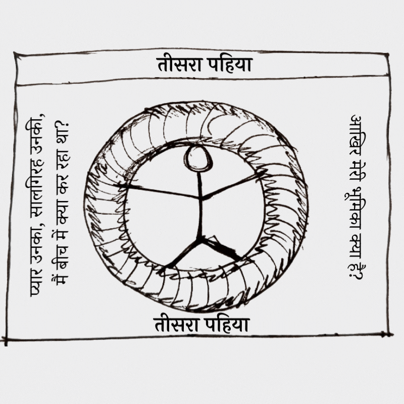 उन दोनों के जाने के बाद भी मेरे मन में कई तरह के सवाल घूमते रहे. मैं उन लोगों के बारे में सोचने लगा जिन्हें मजबूरी में किसी पुल के नीचे या झोपड़पट्टियों में रहना पड़ता है. ऐसी सार्वजनिक जगहों पर उन्हें निजी पल कैसे मिलते होंगे? उनकी इच्छाओं का क्या? वे प्यार करने के लिए कहां जाते होंगे? क्या उनके लिए हम सभी तीसरा पहिया नहीं हैं!?